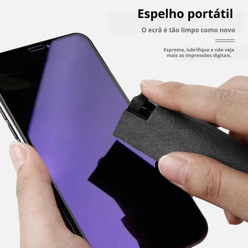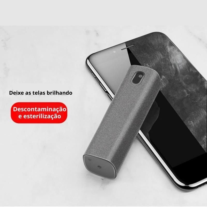 Possui sistema de pulverização que ajuda a remover impressões digitais e outras sujeiras comuns em superfícies de celulares, computadores, tablets e TVs.