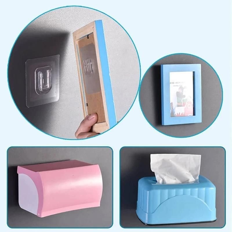 Ganchos dupla face autoadesivos feitos com materiais resistentes e duráveis.
