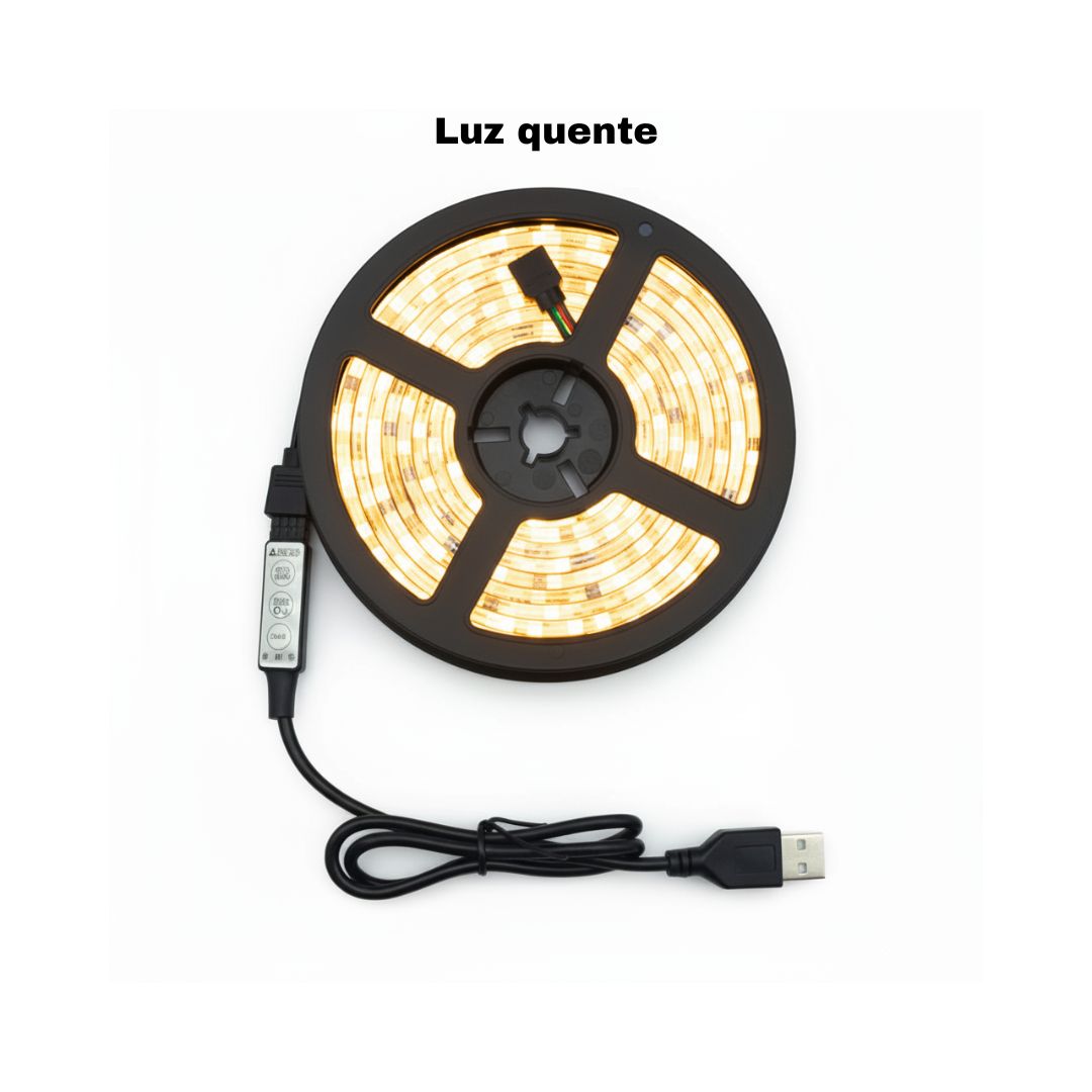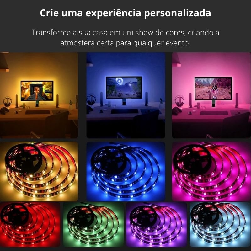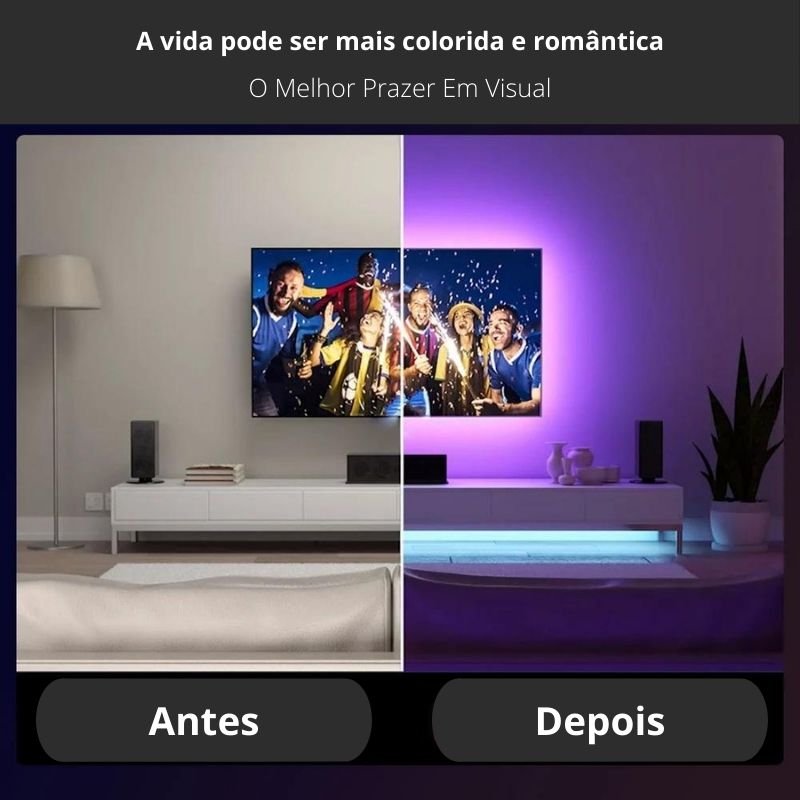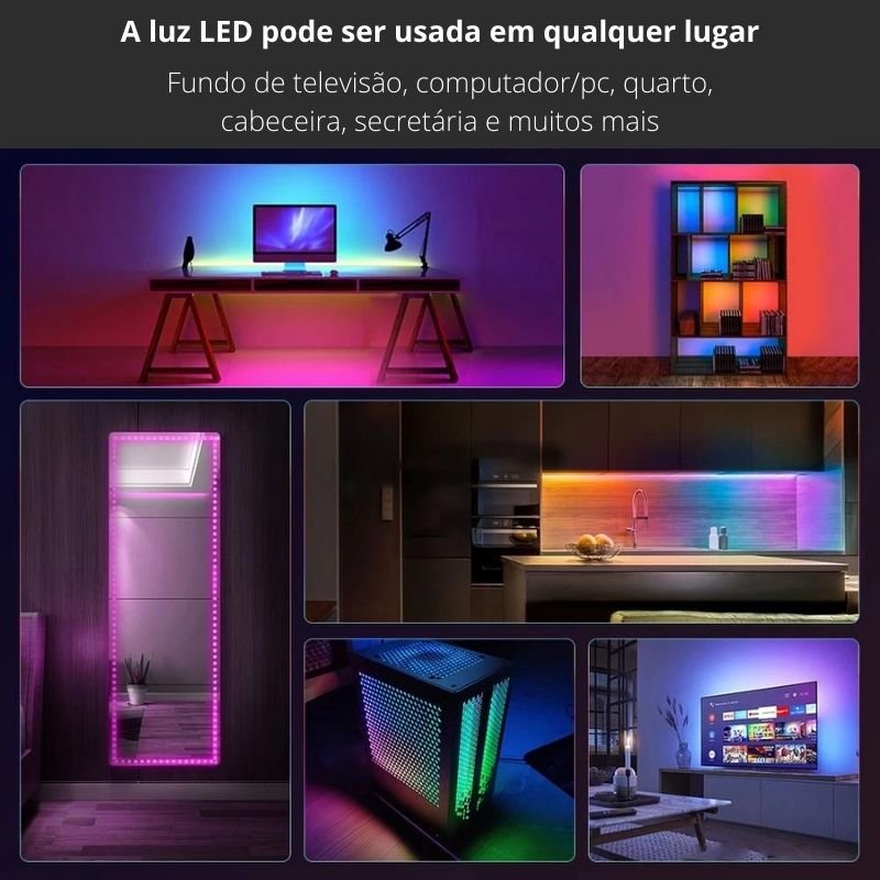 A luz de LED para quartos possui design em fita flexível, que pode ser aplicada em diferentes superfícies e curvas. Acompanha adesivo para instalação e pode ser utilizada em TVs, computadores, motorhomes, decoração de carros e outros ambientes.