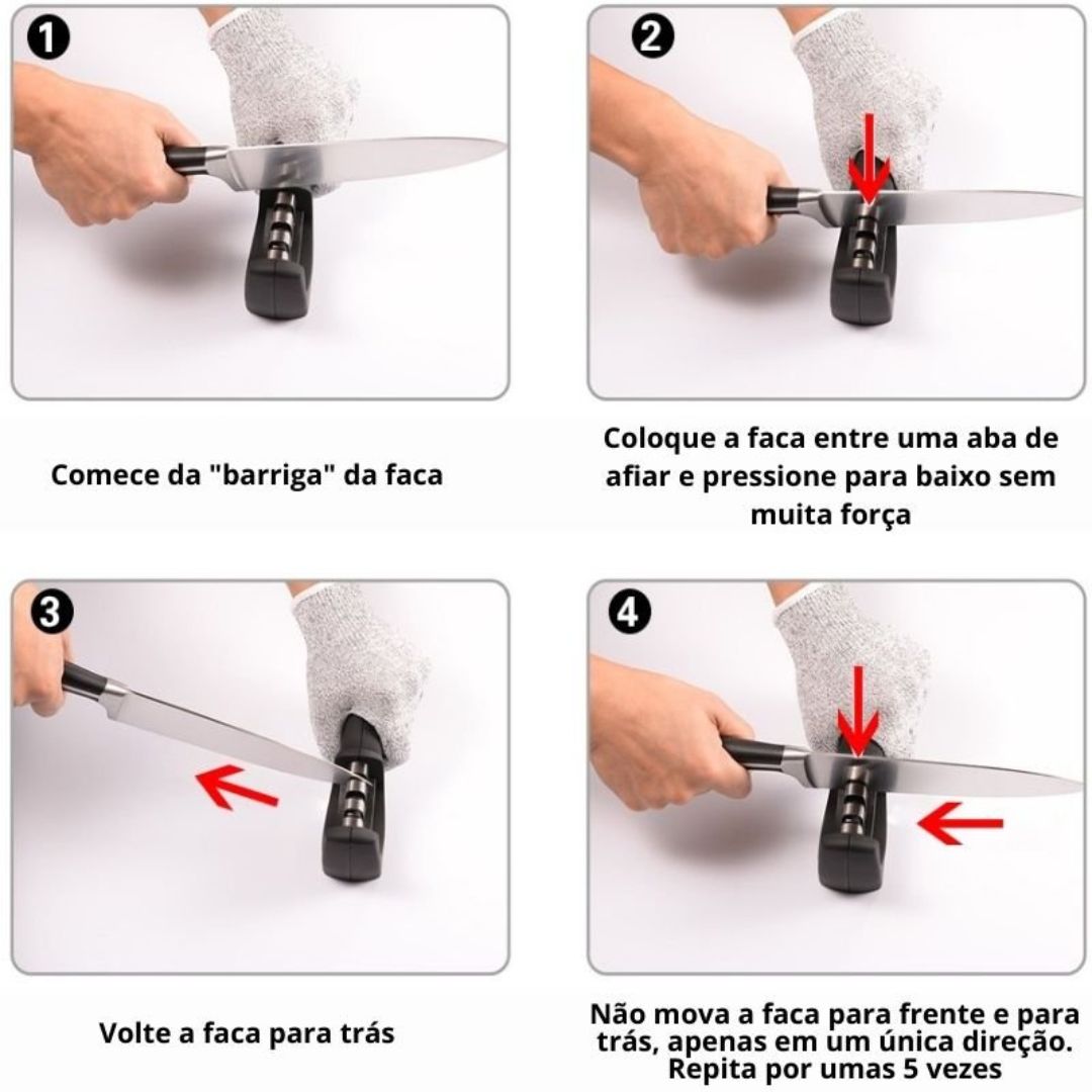 O Afiador de Facas 4 em 1 foi desenvolvido para facilitar o cuidado com lâminas e utensílios de corte do dia a dia. Seu funcionamento é simples e prático, atendendo diferentes tipos de afiação.