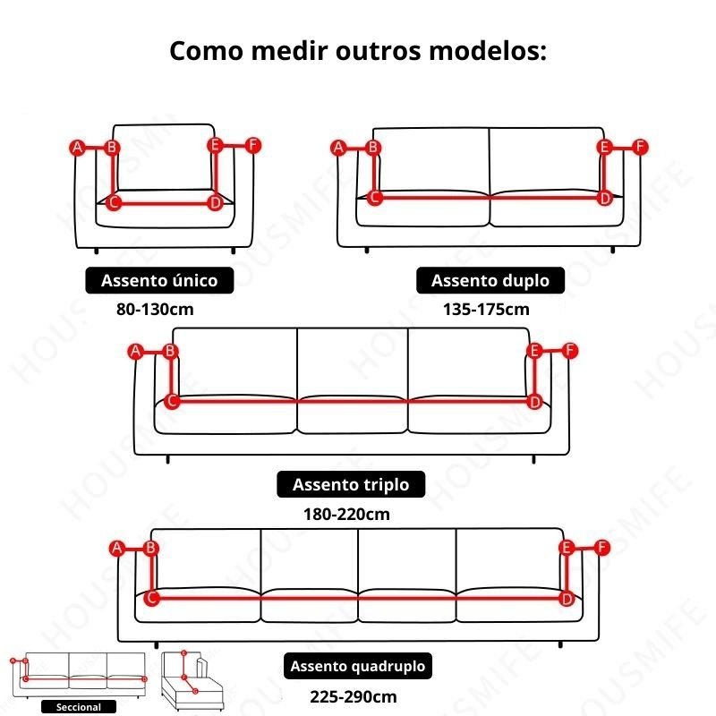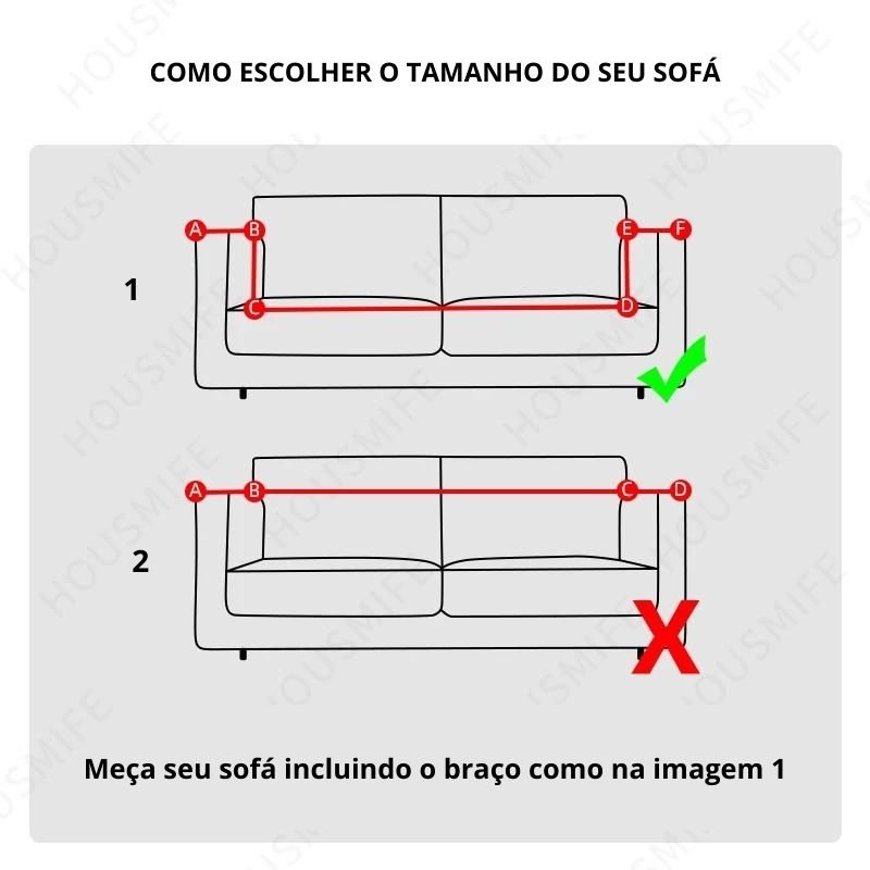 Por favor, para não haver qualquer erro, antes de escolher a sua capa, meça seu sofá incluindo o braço como na imagem!