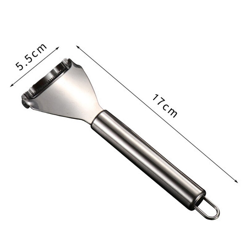 O punho polido em aço inox proporciona firmeza e conforto, enquanto o furo no cabo garante agilidade no uso.
