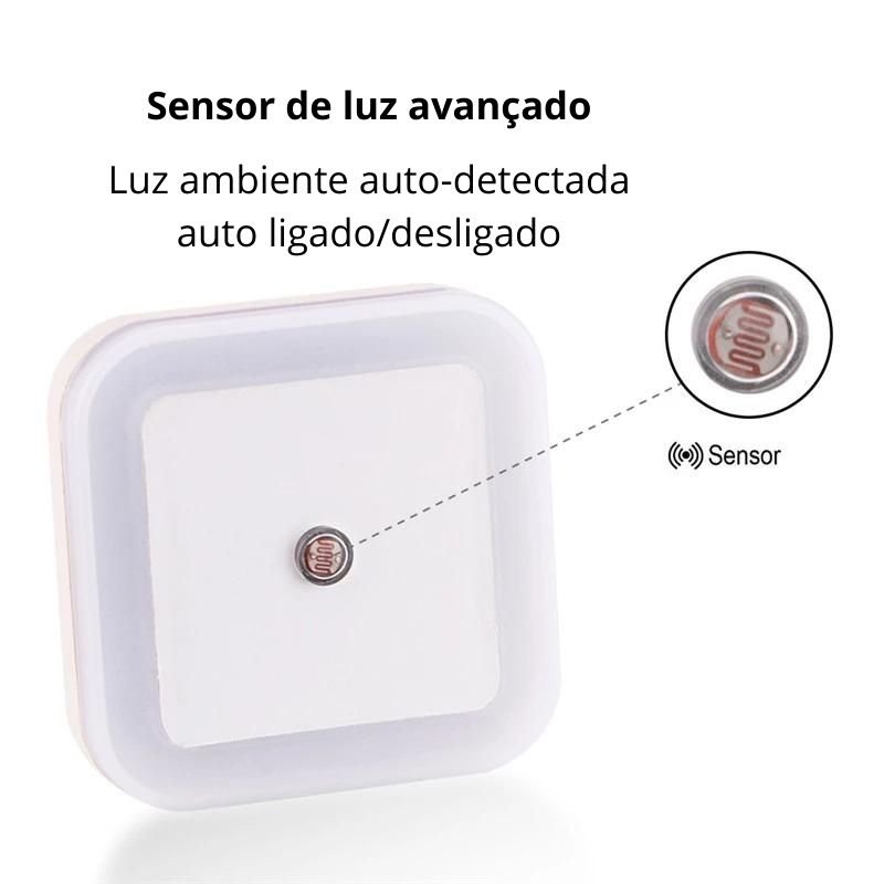 O brilho da luz varia conforme a claridade, ligando automaticamente em locais escuros e permanecendo desligada em ambientes iluminados.