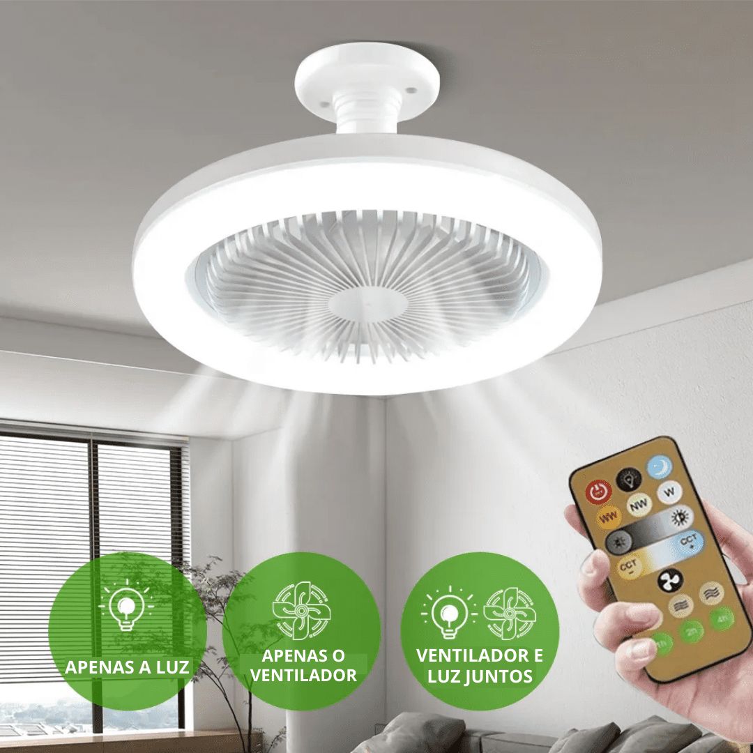 O Ventilador de Teto Portátil une iluminação e ventilação em um só produto prático e moderno.